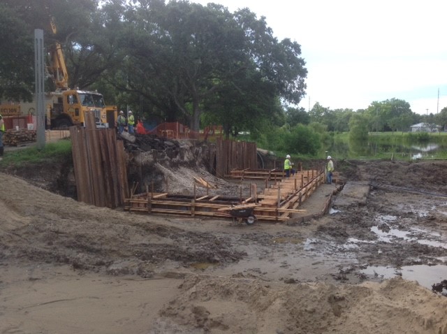 Boh Bros. Construction Co., LLC has completed installing the bridge base over the North Lagoon at Joe W. Brown Memorial Park. The pre-fabricated bridge was delivered on July 25.