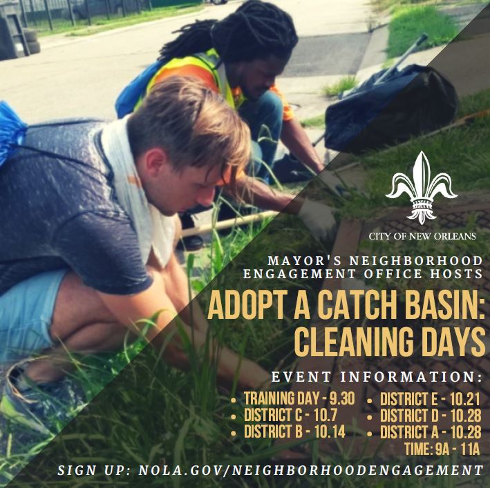 In an effort to raise awareness and educate residents on proper catch basin cleaning, the City is partnering with various neighborhood associations across New Orleans and volunteers to work together to clear vegetation and debris from around catch basins in their respective neighborhoods.